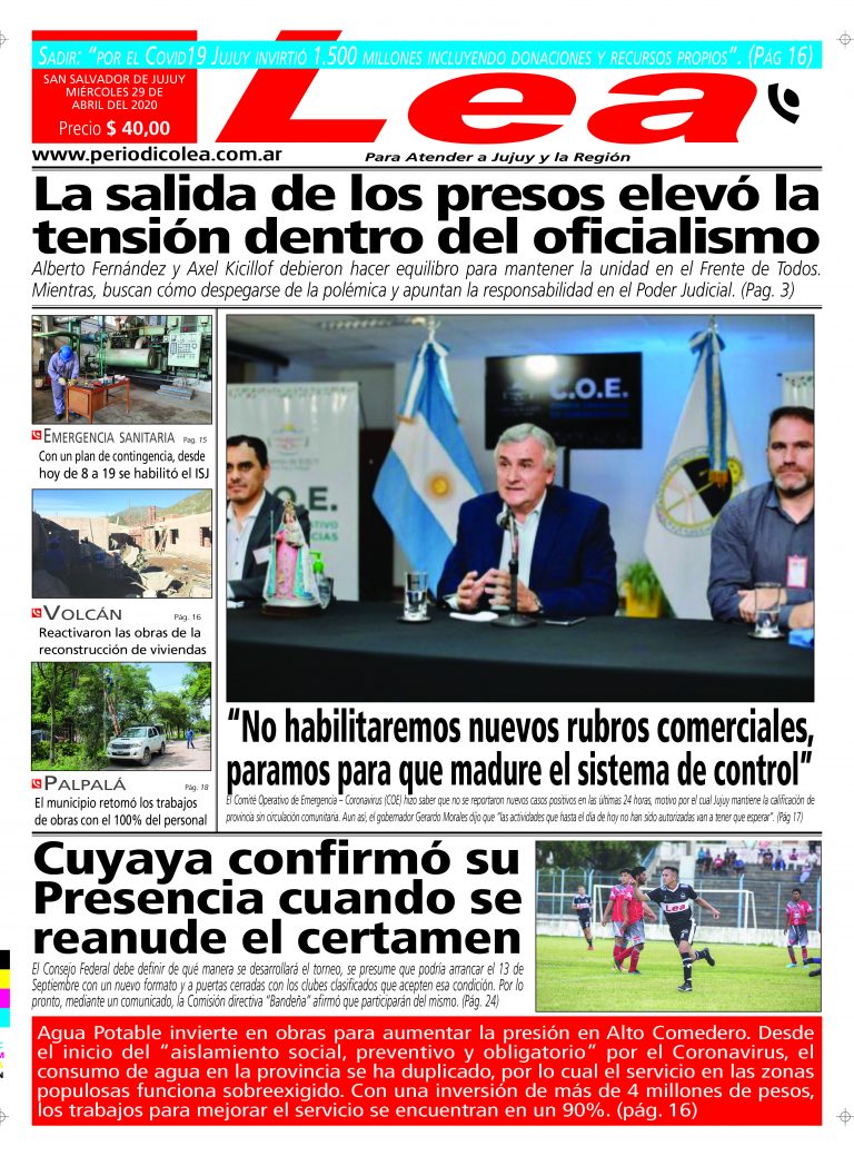 S. S. de Jujuy, 29 de abril de 2026