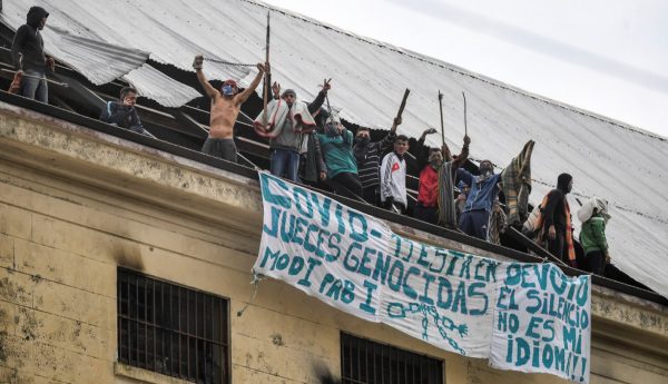 A mediados de abril, en varias cárceles argentinas se iniciaron huelgas de hambre. Los presos reclamaban salir para no infectarse con el virus. El problema afectaba muy especialmente a la provincia de Buenos Aires, donde más de 52.000 personas se hacinaban en centros con capacidad para acoger a 24.000. En Devoto, una prisión federal emblemática de la ciudad de Buenos Aires, se organizó un motín violento que la opinión pública pudo seguir en directo gracias a la distribución de celulares entre los reclusos. El 22 de abril, el Tribunal de Casación de la provincia de Buenos Aires ordenó a los jueces que dieran “de forma inmediata” arresto domiciliario a los presos que formaran parte de grupos de riesgo (por edad o patologías) y hubieran cometido delitos leves. La orden se basaba en un fallo emitido el 8 de abril.