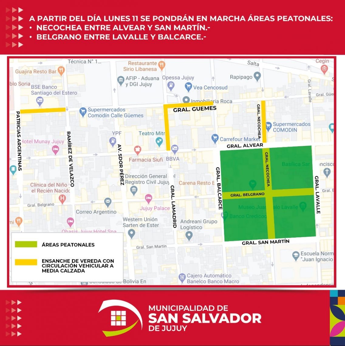 Siguiendo con los cambios que se avecinan para todos los vecinos de la ciudad, el secretario de Servicios Públicos, Guillermo Marenco, expresó “es una tarea que se viene desarrollando con el equipo interdisciplinario de la Municipalidad, y en esta primera etapa contempla la peatonalización de las calles Belgrano (desde Lavalle hasta Balcarce) y Necochea (desde Alvear a San Martín), generando un microcentro con gran accesibilidad a la vida comercial y brindando además el marco de seguridad sanitaria”.
