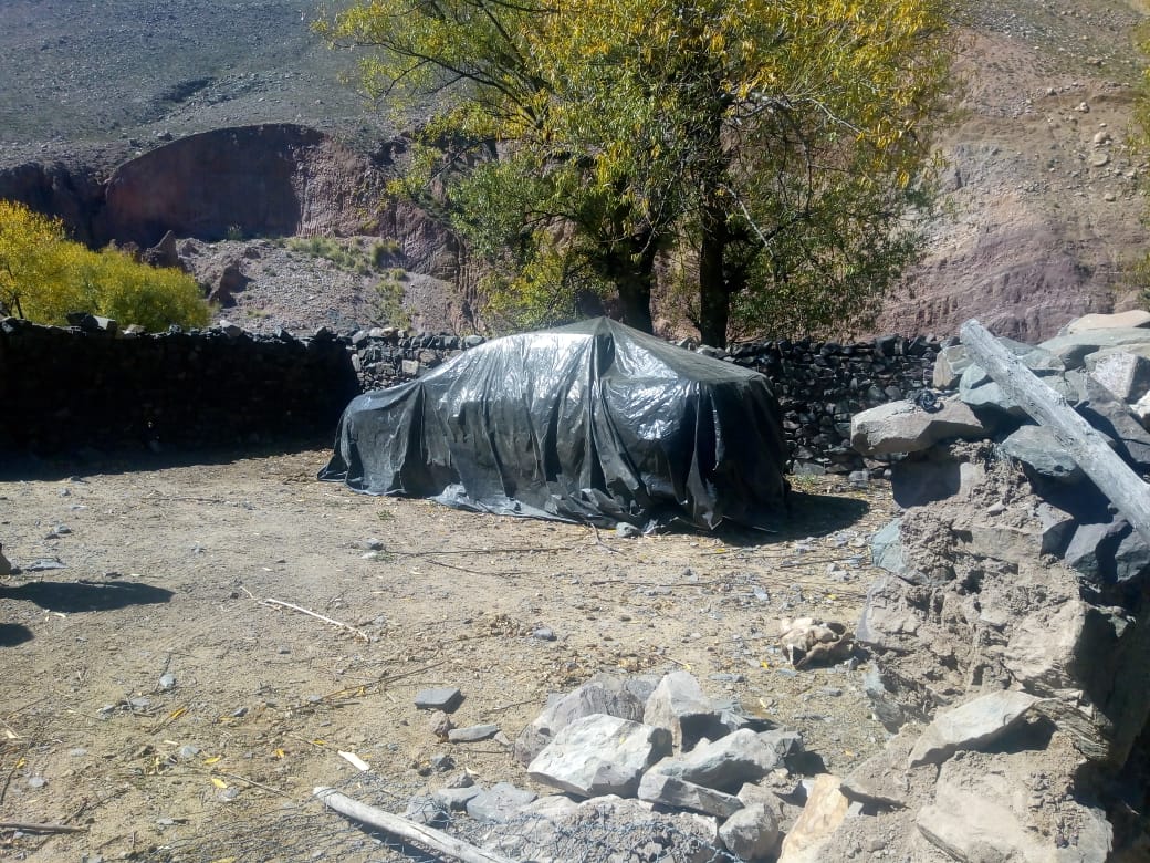 aproximadamente a 20 km, de la localidad de Purmamarca, donde se encontraba escondida dentro deun corral de piedras abandonado. El rodado estaba cubierto con un plástico de color negro en sutotalidad, advirtiéndose luego que no tenía las chapas patentes del vehículo.