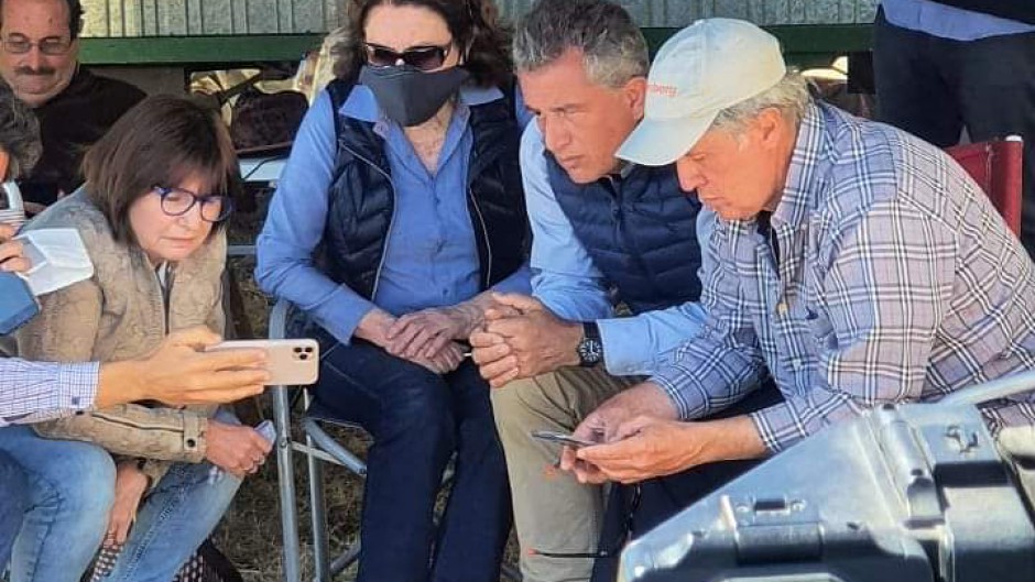 El ex ministro de Agroindustria de Mauricio Macri siguió la transmisión del fallo por celular desde la entrada de la estancia «Casa Nueva» junto a sus dos hermanos, su madre y la presidenta del PRO, Patricia Bullrich, que viajó este jueves a Santa Elena.