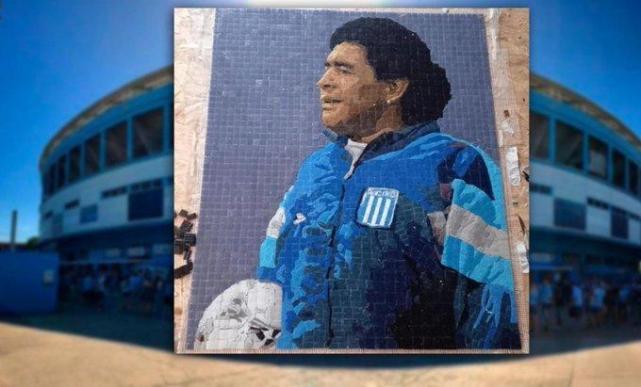 Inauguran un mural de Diego Maradona en el estadio de Racing en Avellaneda