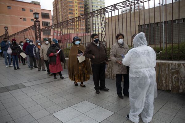 La Sociedad Boliviana de Terapia Intensiva informó a la prensa que existen unos 20 pacientes esperando por una de las 4000 camas que hay en todo el país para atender enfermos críticos. Hasta ahora, 14.472 personas han muerto en Bolivia por el Covid.