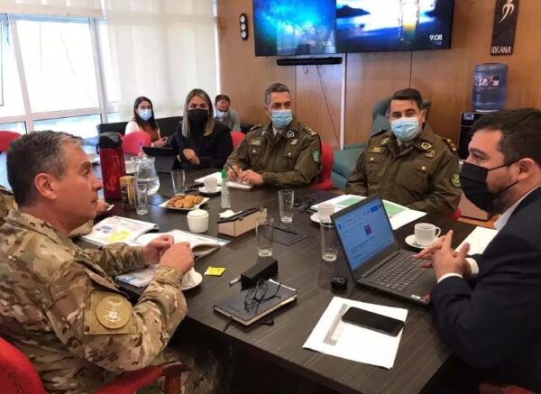 Se reunió con el vicealmirante José Luis Fernández, quien asumirá como jefe de la Fuerza Regional de Tarapacá, y el jefe de la Primera Zona de Carabineros, general Sergio Telchi.