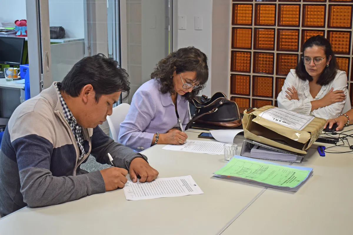 Durante el acto realizado en Casa Central del IVUJ, ubicada en Güemes 853, estuvieron presentes los vocales técnico y social del Instituto de Vivienda y Urbanismo de Jujuy (IVUJ), Sergio Soria y Marcelo García, respectivamente; la escribana Carla Jimena Ellemberg de Escribanía de Gobierno; Adriana Varela en representación de Fiscalía de Estado; Belén Muñoz, Coordinadora Jurídica del organismo, y representantes de la empresa oferente.