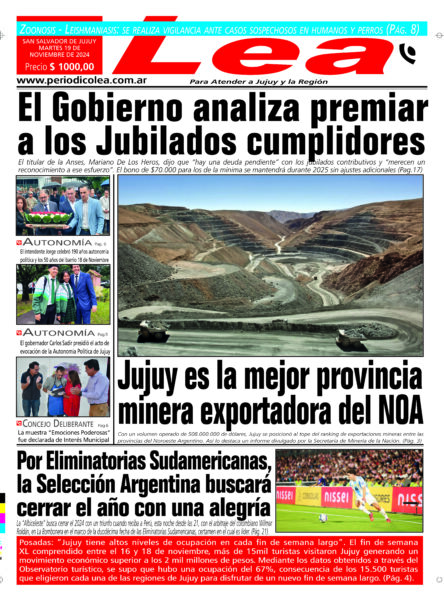 © PERIÓDICO LEA ONLINE – Av. Bolivia 1897, 4600 S. S. de Jujuy – Tel: +54 388 4234234 – periodicoleajujuy@gmail.com