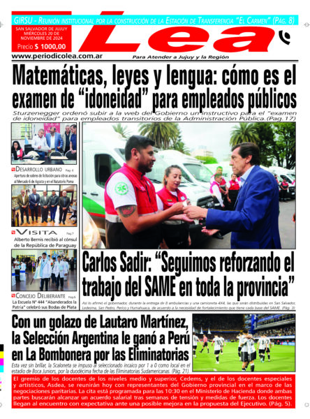 © PERIÓDICO LEA ONLINE – Av. Bolivia 1897, 4600 S. S. de Jujuy – Tel: +54 388 4234234 – periodicoleajujuy@gmail.com