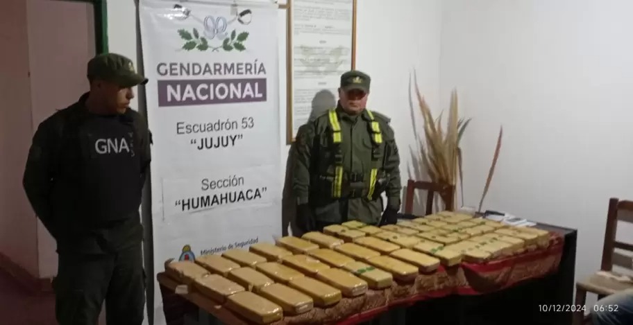 Personal de Gendarmería Nacional secuestró paquetes que contenían más de 43 kilos de cocaína en la Puna de Jujuy. El estupefaciente fue valuado en más de 665 millones de pesos.