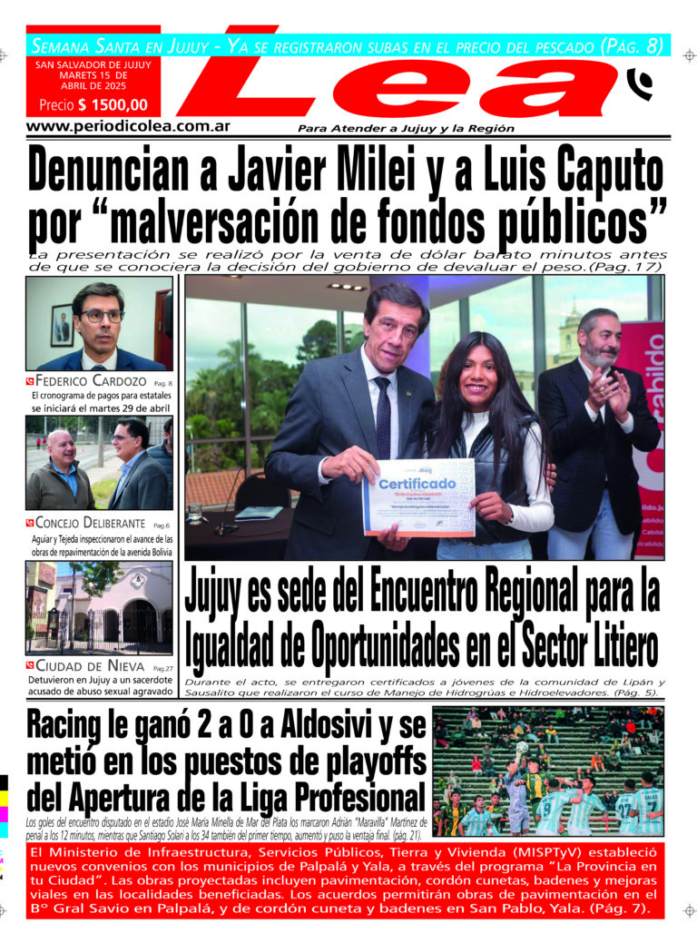 S. S. de Jujuy, 15 de abril de 2026