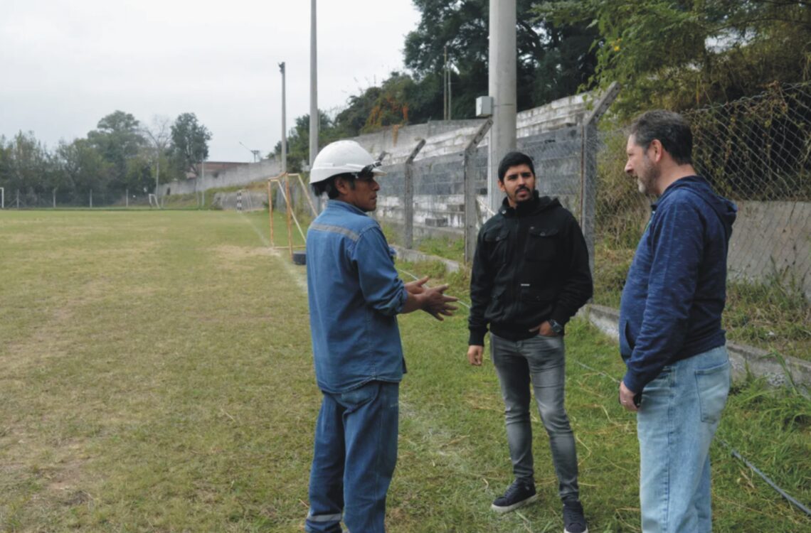 Marcelo Nieder, director de Energías Renovables y Eficiencia Energética de la Secretaría de Energía, recorrió el CAC junto a Mario Herrera, presidente de la Comisión Directiva del Club, y a trabajadores de la empresa que despliega las obras, que iniciaron tras las evaluaciones que se dieron en abril.
