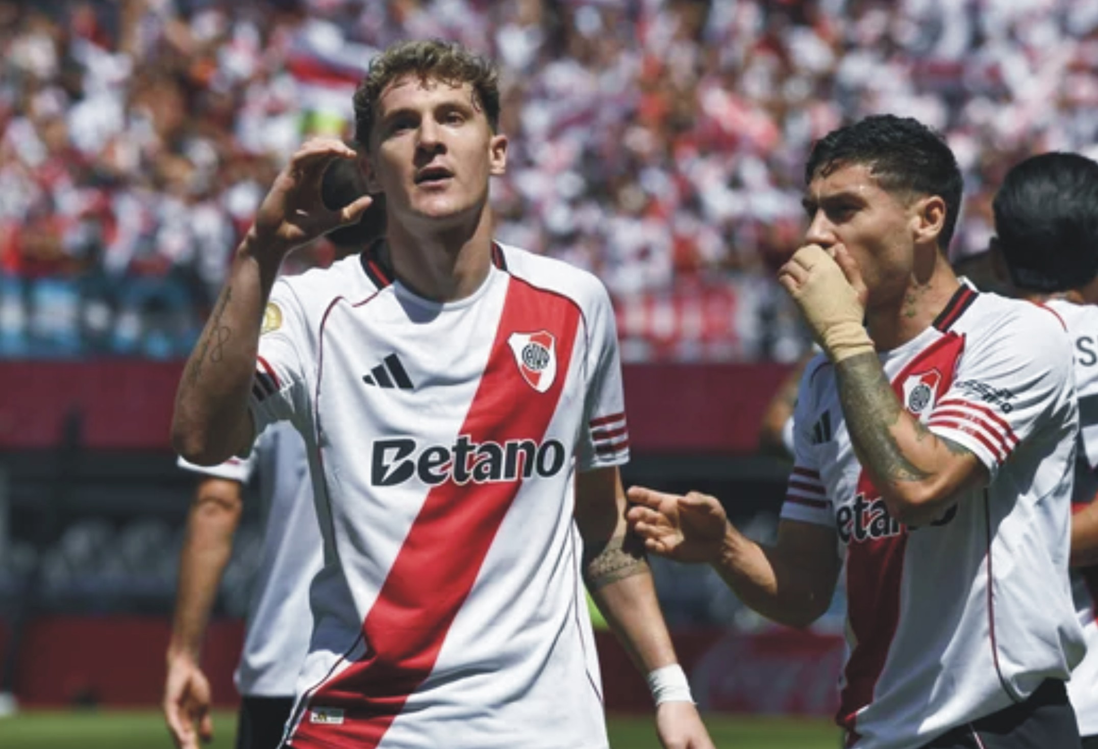 River: Franco Armani; Gonzalo Montiel, Germán Pezzella, Paulo Díaz, Lucas Martínez Quarta, Marcos Acuña; Matías Kranevitter, Nacho Fernández, Maximiliano Meza, Franco Mastantuono; Facundo Colidio. DT: Marcelo Gallardo.