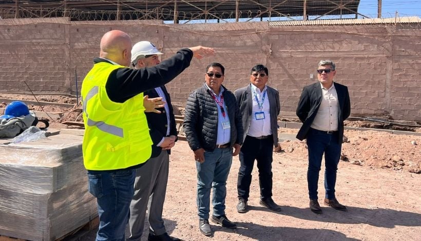 El ministro subrogante de Transportes y Telecomunicaciones, Jorge Daza, junto al seremi Pedro Medalla y representantes de las empresas Transatélite, Electrochile y Vivipra, recorrieron las obras de construcción del centro de carga para buses eléctricos en Iquique, ubicado al interior del terminal de la Línea 1.