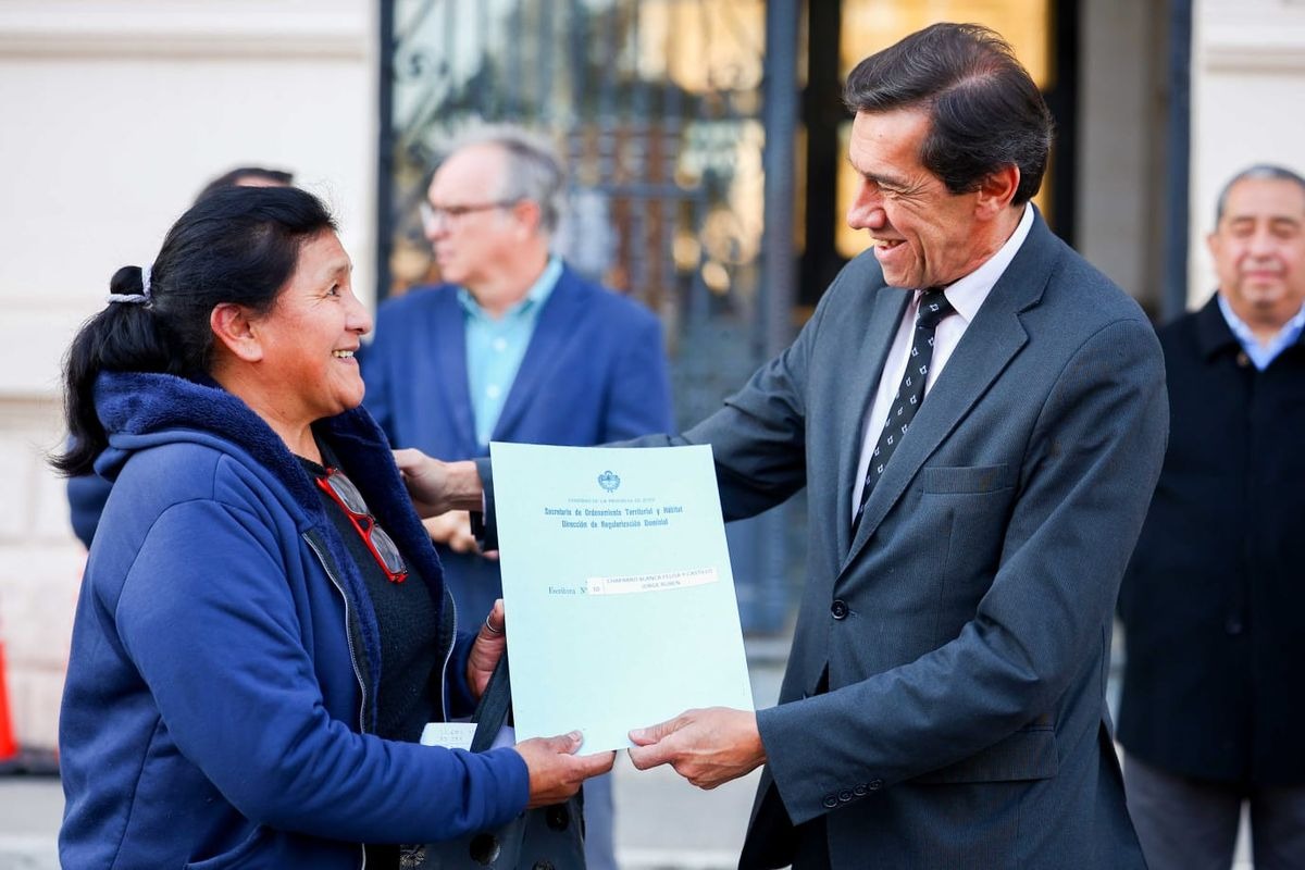 El acto, realizado en la playa de estacionamiento de Casa de Gobierno, contó con la presencia de funcionarios provinciales, el intendente de Yala, Santiago Tizón; el titular del Concejo Deliberante capitalino, Lisandro Aguiar; la escribana de Gobierno y familias beneficiarias, en una acción que reafirma el compromiso del Gobierno de Jujuy con la regularización dominial en todo el territorio.