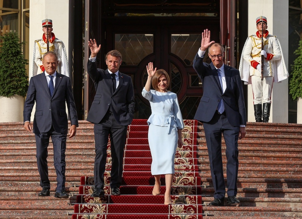 Frente a la amenaza rusa, Emmanuel Macron, Friedrich Merz y Donald Tusk abrieron la puerta de la Unión Europea a Moldavia