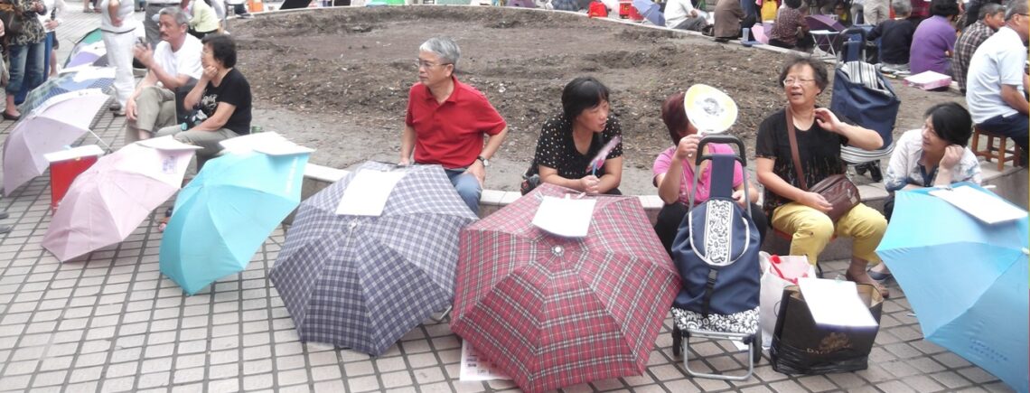 En los parques de China, los progenitores se convierten en casamenteros armados con carteles, paraguas y esperanza