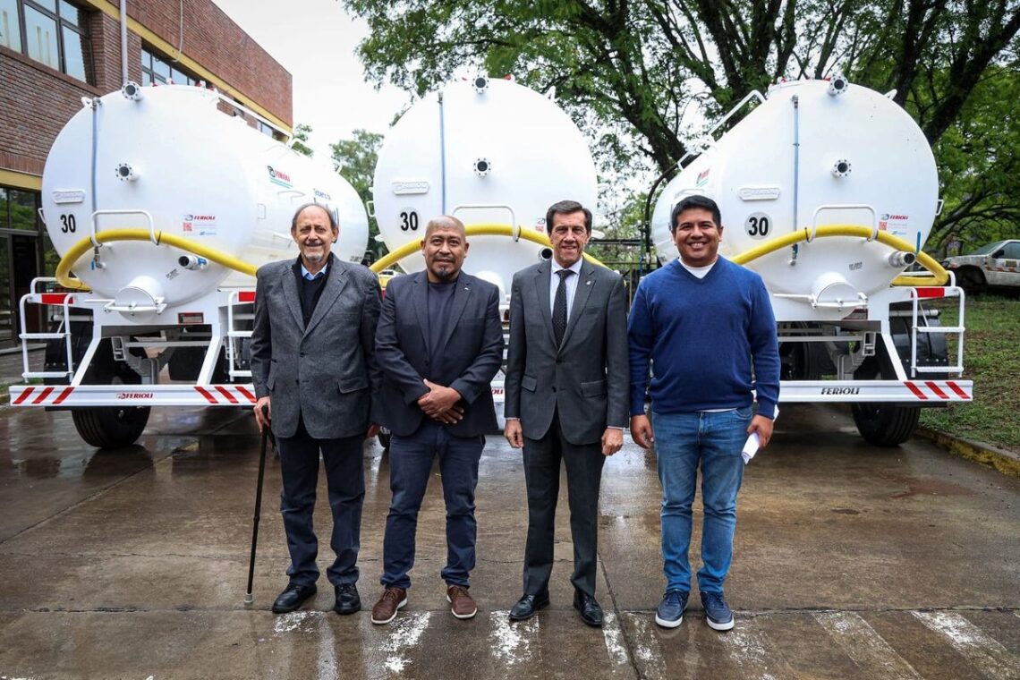 El acto tuvo lugar en el predio de la Dirección Provincial de Vialidad, donde se dieron cita el presidente de dicho organismo, Hugo Ponce, y los intendentes José Mario Cardozo, de Fraile Pintado; y de Yuto, David Abraham; y el comisionado de Rodeito, Eduardo Orellana.