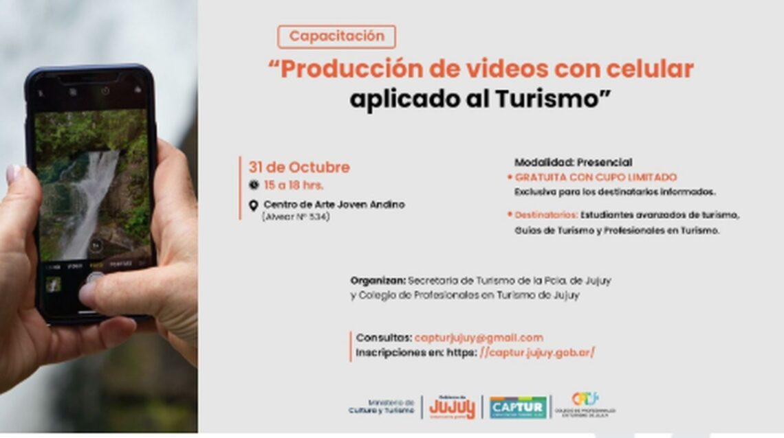 La Secretaría de Turismo de Jujuy y el Colegio de Profesionales en Turismo ofrecen una capacitación sobre producción de videos con celular aplicado al turismo. El taller brinda herramientas prácticas para crear contenido audiovisual de calidad con el teléfono móvil, un recurso clave para la promoción turística en redes sociales.