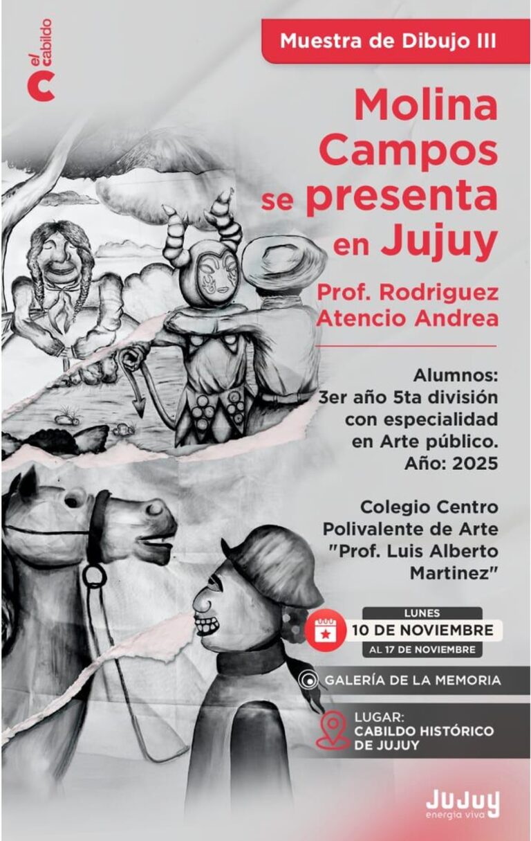 Muestra abierta hasta el 17 de noviembre: estudiantes del Polivalente de Arte homenajean a Molina Campos