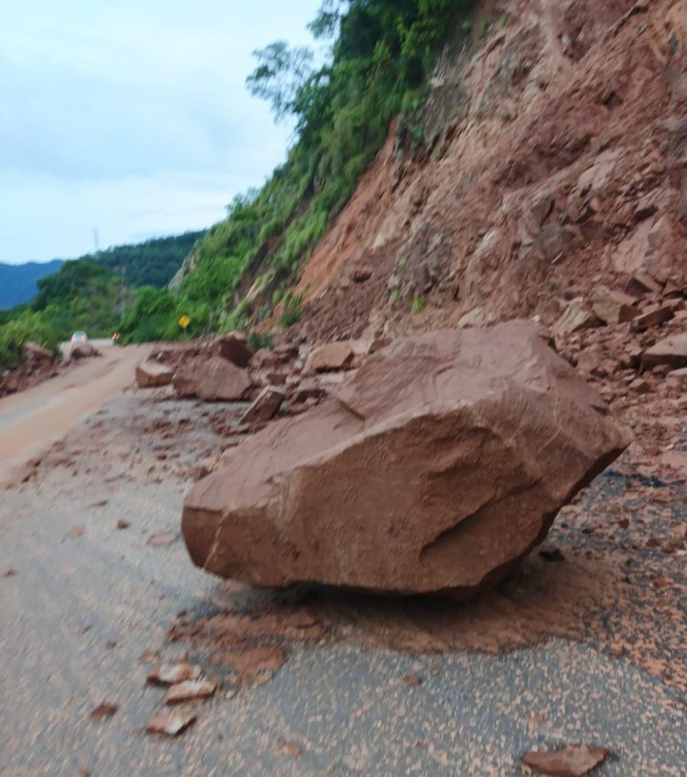 El segundo derrumbe se registró en el subtramo Entre Ríos – Palos Blancos, a la altura de la comunidad de San Simón, donde actualmente existe circulación por un solo carril, lo que genera tránsito lento y riesgo para los conductores.