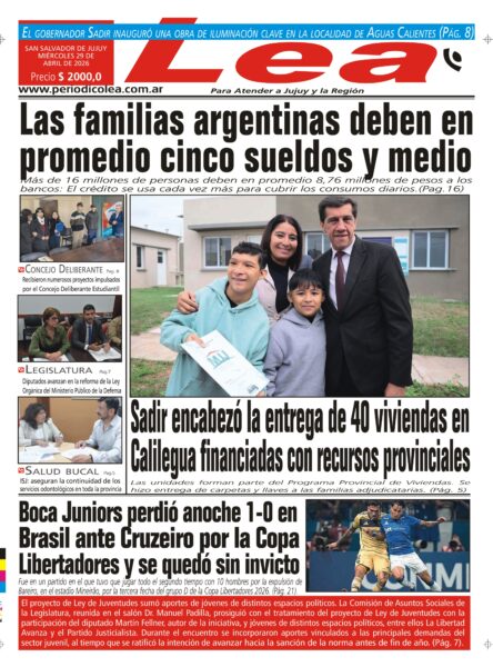 S. S. de Jujuy, 29 de abril de 2026